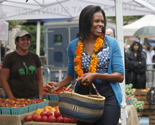 组图:美国第一夫人提菜篮逛市场买菜(2)