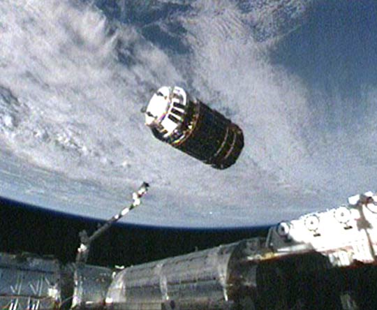 日本无人驾驶太空货运飞船——空间站转运飞行器1号(HTV1)飞抵国际空间站并准备与之对接。