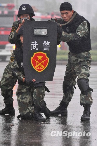 组图:郑州警方雨中举行国庆安保反恐演习(7)