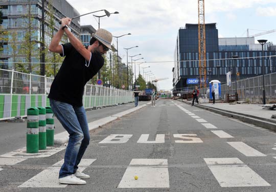当地时间9月19日,法国巴黎举行了一场街头高尔夫球赛,众多参与者在街道上挥杆,一展身手。