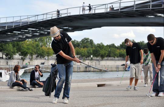 巴黎街头高尔夫赛 选手街道上挥杆(2)
