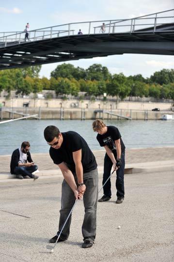 巴黎街头高尔夫赛 选手街道上挥杆(3)