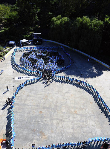 9月20日,联合国气候变化峰会开幕在即,在美国纽约中央公园,志愿者们聚集在一起用身体组成地球困在沙漏里,组织者希望通过这项活动唤起人们对全球气候变化的关注。