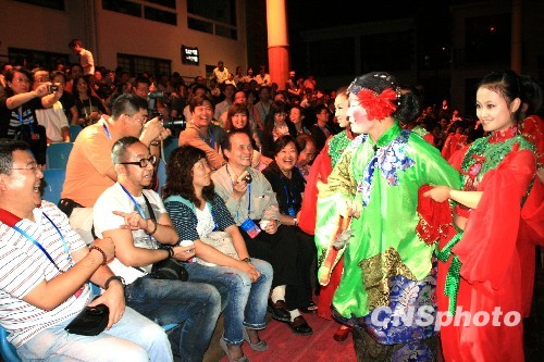 图为海外华文媒体人士在“中国第一水乡”---周庄,观赏中国第一部呈现江南原生态文化的水乡实景演出,大型原生态水上情景表演《四季周庄》。中新社发 崔佳明 摄