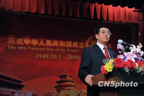 中国驻旧金山总领馆9月22日晚举行招待会,与旧金山湾区的数百名华侨华人一起,欢庆新中国六十华诞。中国驻旧金山总领事高占生及夫人参加了当天的庆祝活动。