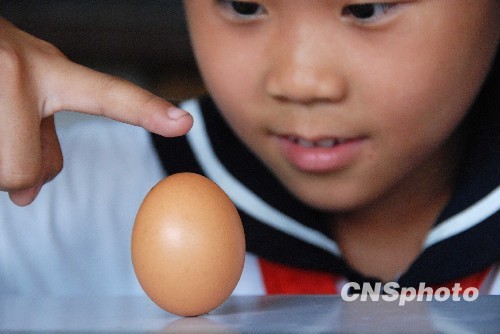9月23日,山东滨州滨城区第六小学的学生们在玩“竖蛋”游戏,体验民俗。当日是中国农历二十四节气中的第十六个节气“秋分”,民间有秋分玩“竖蛋”游戏的习俗。