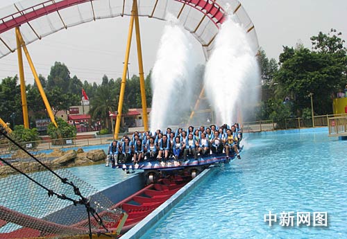 中新网广州九月二十五日电(记者 周志彬) 9月25日,香港凤凰卫视“中华小姐环球大赛”进入半决赛的二十二位佳丽在广州长隆欢乐世界体验了垂直过山车。
