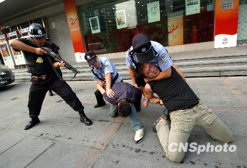 图:杭州警方举行运钞车安全防控演练(3)