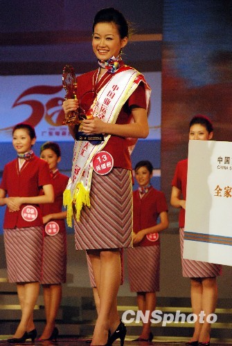 9月27日晚,2009中国亚运空姐招募大汇全国精英总决赛在广州隆重举行。来自湖南长沙的周姗姗一举摘得桂冠,苏琳、仉乐分获亚、季军。