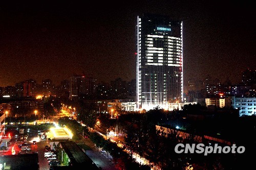 北京外企大楼点亮“60”庆祝中国国庆(3)