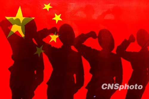 近日,在国庆阅兵即将到来的时刻,空降兵战车方队在国旗前庄严宣誓。目前各个受阅方队以不同形式鼓舞士气。中新社发 卢炳广 摄