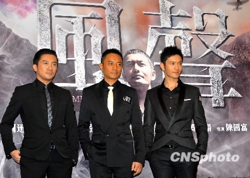 九月二十九日,中国首部谍战电影《风声》在香港举行发布会。《风声》三位顶级猛男帅哥演员苏有朋、张涵予及黄晓明(左起)出席为电影宣传,为电影在三十日公映造势。中新社发 邓庆乐 摄
