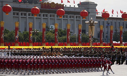 10月1日,首都各界庆祝中华人民共和国成立60周年大会在北京举行。女民兵方队通过天安门广场。