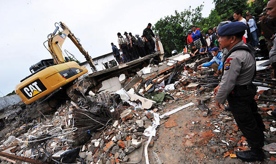 当地时间9月30日,印度尼西亚苏门答腊发生里氏7.9级地震。据印度尼西亚官方统计,截至目前已造成至少464人死亡,多人被困。图为10月1日,人们在废墟中寻找幸存者。