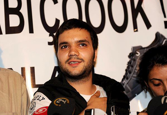 24岁的“扔鞋”学生塞尔丘克·厄兹贝克在土耳其伊斯坦布尔被警察释放后对媒体讲话。