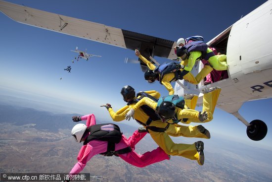 2009年9月底,美国加利福尼亚,181名来自31个不同国家的女跳伞运动员共同创造了一项新的世界纪录:最多女性跳伞的纪录。