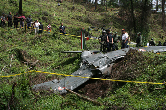 当地时间10月2日,墨西哥军方在墨西哥米却肯州山区查看坠毁的一架空军小型飞机的残骸。据称飞机坠毁可能是由于恶劣天气和大雾造成。