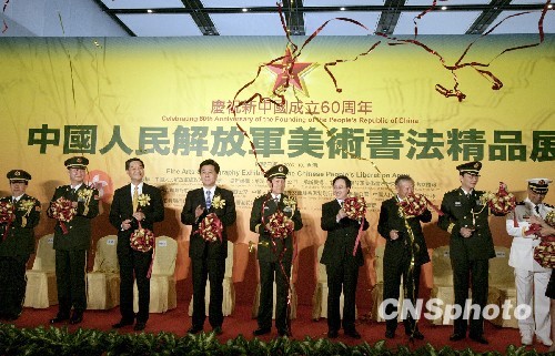 中央人民政府驻香港特别行政区联络办公室副主任李刚,中国人民解放军驻香港部队政委刘良凯中将等出席了展览开幕式。中新社发 张勤 摄