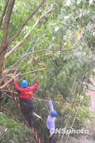 10月12日,今年第17号热带风暴“芭玛”在海南琼海和万宁市之间登陆,中心附近最大风力9级。风暴登陆时琼海风狂雨骤,大批树木被刮倒,部分地区停电,市民在风雨中奋起抗灾。中新社发 蒙钟德 摄