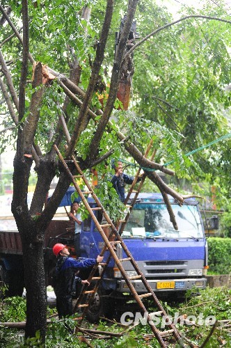 10月12日,今年第17号热带风暴“芭玛”在海南琼海和万宁市之间登陆,中心附近最大风力9级。风暴登陆时琼海风狂雨骤,大批树木被刮倒,部分地区停电,市民在风雨中奋起抗灾。中新社发 蒙钟德 摄