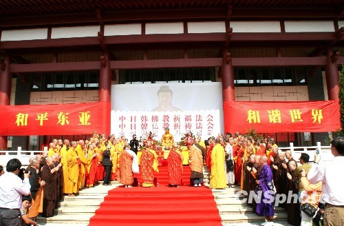 10月15日上午,扬州举行第五届中日韩文化交流论坛之际,中日韩三国千名僧众在扬州鉴真图书馆广场举行和平东亚、和谐世界祈福法会。
