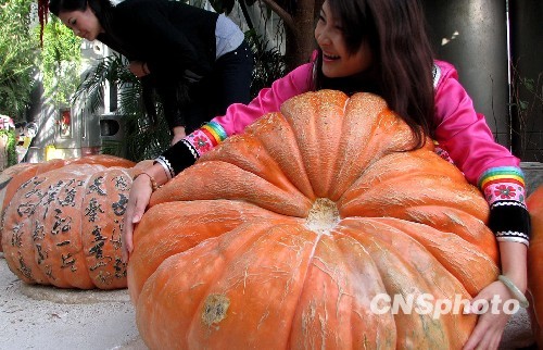 北京植物园巨型彩绘南瓜吸引游客(2)