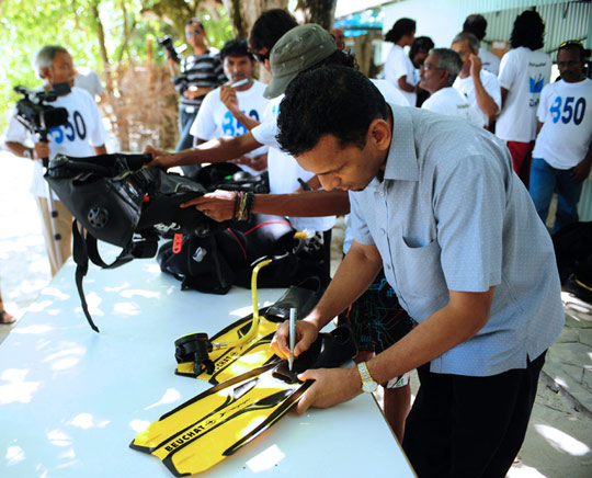 担忧全球变暖 内阁部长潜水开大会(图)
