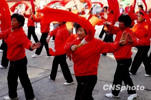 图为在北京社区开展的老年健身活动中女性占百分之85以上。中新社发 钱兴强 摄