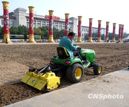 图:天安门广场两侧草坪准备“复原”(4)
