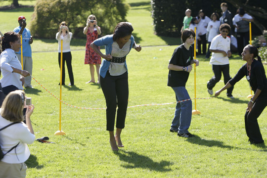 10月21日,美国第一夫人米歇尔在白宫南草坪举行了一场名为“健康孩子”的活动。旨在鼓励孩子们参加户外锻炼和烹饪健康食物。