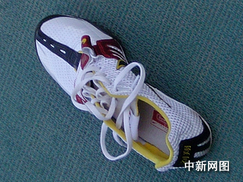 中新网济南10月22日电 (记者 沈晨 翁阳) 二十二日,昨晚抵达济南的刘翔在奥体中心田径训练场进行首堂训练课。刘翔今天穿了一双印有他名字的钉鞋,他左脚穿的是白色的新鞋,右脚的黑鞋是相对软一些、舒适一些的的旧鞋,有利于保护他的伤脚。