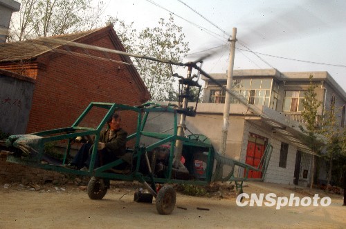 10月23日,山东省郯城县马头镇郁顶村农民宋明武对改造后的直升机进行第九次试飞,由于动力不足和旋翼平衡问题没能成功。宋明武自1995年开始研制直升飞机,于2005年11月15日实施了第八次试飞,然而均告失败。宋明武表示因家境贫寒不再继续研制,希望景区等部门能出资收购,缓解其经济压力。 中新社发 房德华 摄