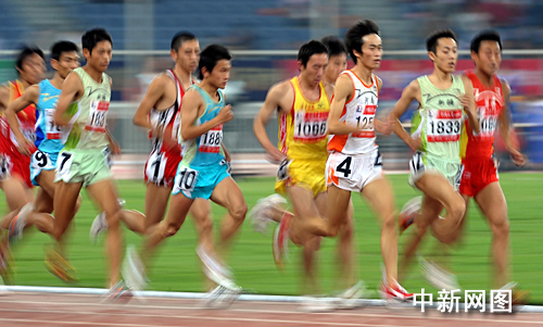 10月23日晚,在第十一届全运会田径男子1500米、女子1500米、女子4x400米接力赛上,运动健儿激情飞跃、展现雄姿英姿。 陈文 摄