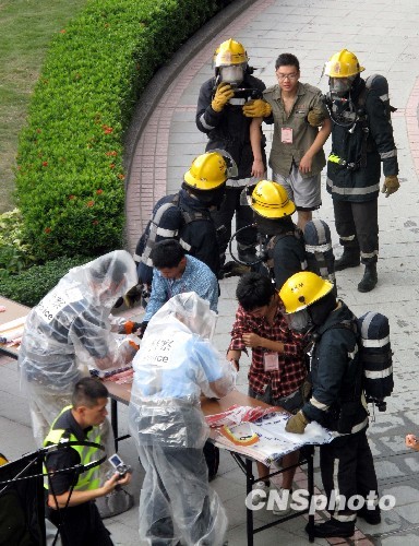 10月27日,香港多个政府部门在石硖尾公园体育馆进行联合演习,模拟在东亚运动会期间出现生化事故,测试应变能力。中新社发 洪少葵 摄