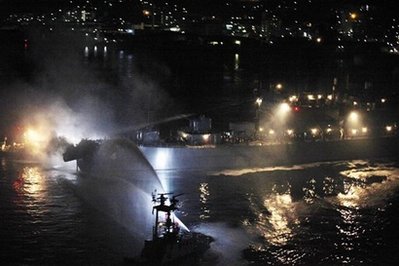 二十七日晚当地时间七点五十六分前后,日本海上自卫队护卫舰“KURAMA”号与韩国籍集装箱船“CARINA STAR”号相撞着火,至少有三名自卫队队员在此次事故中受伤。