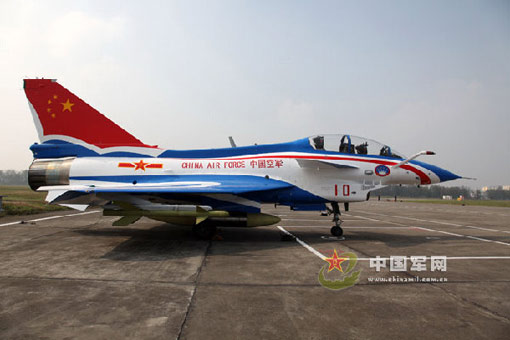 在国庆60周年首都阅兵盛典中,率先飞过天安门的空军“八一”飞行表演队,将换装由中国自主研发设计的歼-10战机,并将在机身喷涂新图案。