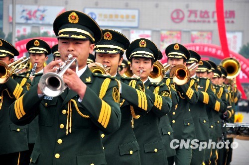 10月28日,中国人民解放军军乐团通过南昌八一广场进行军乐游行。当日,第三届中国·南昌国际军乐节在江西南昌隆重举行。来自美国、英国、俄罗斯、新加坡和中国人民解放军、海军、武警总队及香港警察等10余支国家和地区的军乐团进行了精彩的军乐游行表演。中新社发 马裕淇 摄
