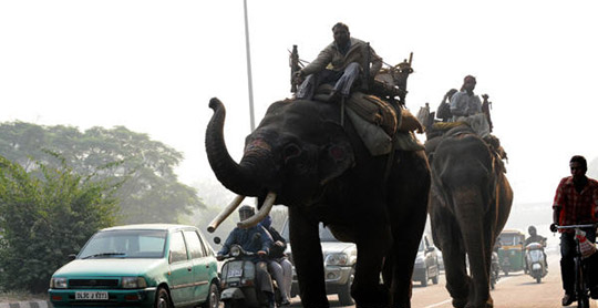 大象印度街头招摇过市 成流行交通工具(3)