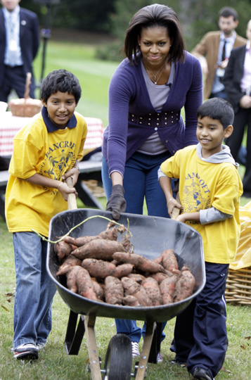 组图:美国第一夫人白宫菜园里挖红薯(4)