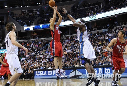 中国球员易建联所在的NBA网队31日作客华盛顿,以104-123不敌奇才,新赛季以三连败开局。易建联全场拿下6分和7个篮板。中新社发 李静 摄