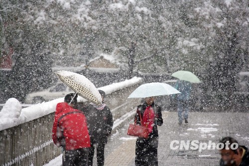 组图:北京受寒潮影像降罕见大雪(3)