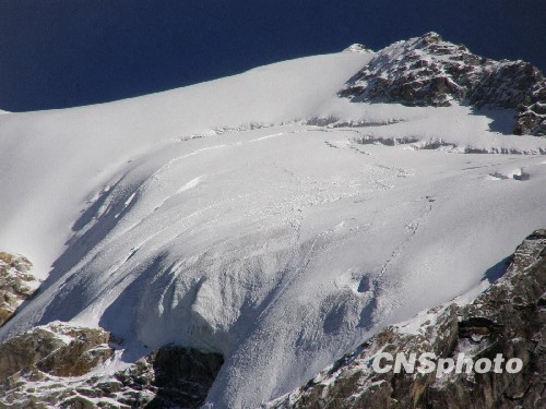 11月1日,四川阿坝州四姑娘山地区普降大雪,目前沟内积雪厚度达30厘米,给搜救被埋的两名俄罗斯游客增加了难度。10月31日中午13时30分许,两名俄罗斯游客来到四姑娘山公安分局报案,称他们一行四人于28日在四姑娘山骆驼峰遭遇雪崩,有三人被埋,其中一人被救出,另二人生死不明。接到报警后,四姑娘山风景名胜区管理局立即启动应急预案,当日先后派出两批30多人的搜救队进行搜救。1日又派出包括幸存的两名俄罗斯游客在内的第三批搜救队。图为四姑娘山长坪沟骆驼峰出事地点所在地。中新社发 四姑娘山管理局 摄