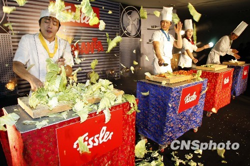 11月1日,韩国乐团NANTA进行精彩风趣的表演。当晚,韩国演出团体NANTA在北京华贸新光天地上演“厨房打击秀”——《炫打厨房》。《炫打厨房》将各种厨具当成打击乐器进行表演,自1997年演出至今长盛不衰,今次在北京首演。中新社发 杨可佳 摄