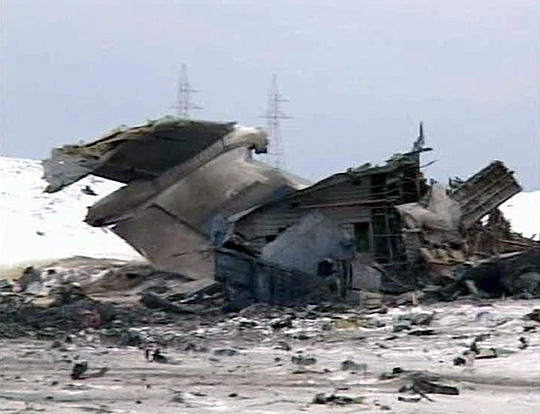 图为俄内务部运输机坠毁现场的飞机残骸。
