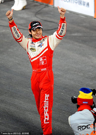 图为林志颖在赛场上。