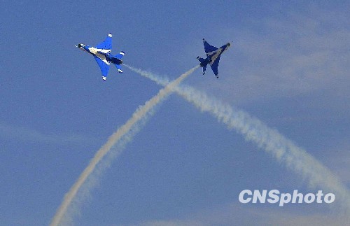 图为歼七表演的空中芭蕾。中新社发 潘旭临 摄