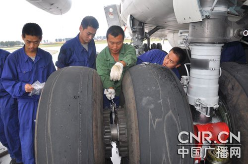 机务人员维护保养空警-2000轮胎。渠晓静 摄