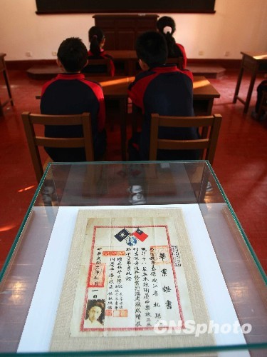 图为钱学森先生北师大附中的毕业证书(复制品)。中新社发 富田 摄