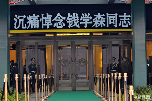 11月6日,“中国航天之父”钱学森的追悼会在北京八宝山举行。图为设在八宝山的灵堂。