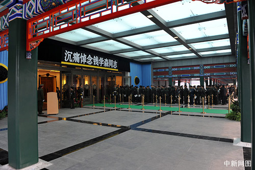 11月6日,“中国航天之父”钱学森的追悼会在北京八宝山举行。图为前来悼念的人群排队进入灵堂。